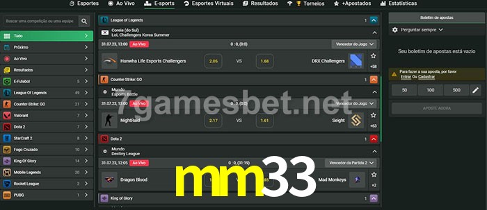 O mm33 oferece uma grande seleção de opções de apostas em e-sports com probabilidades competitivas
